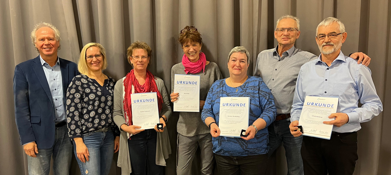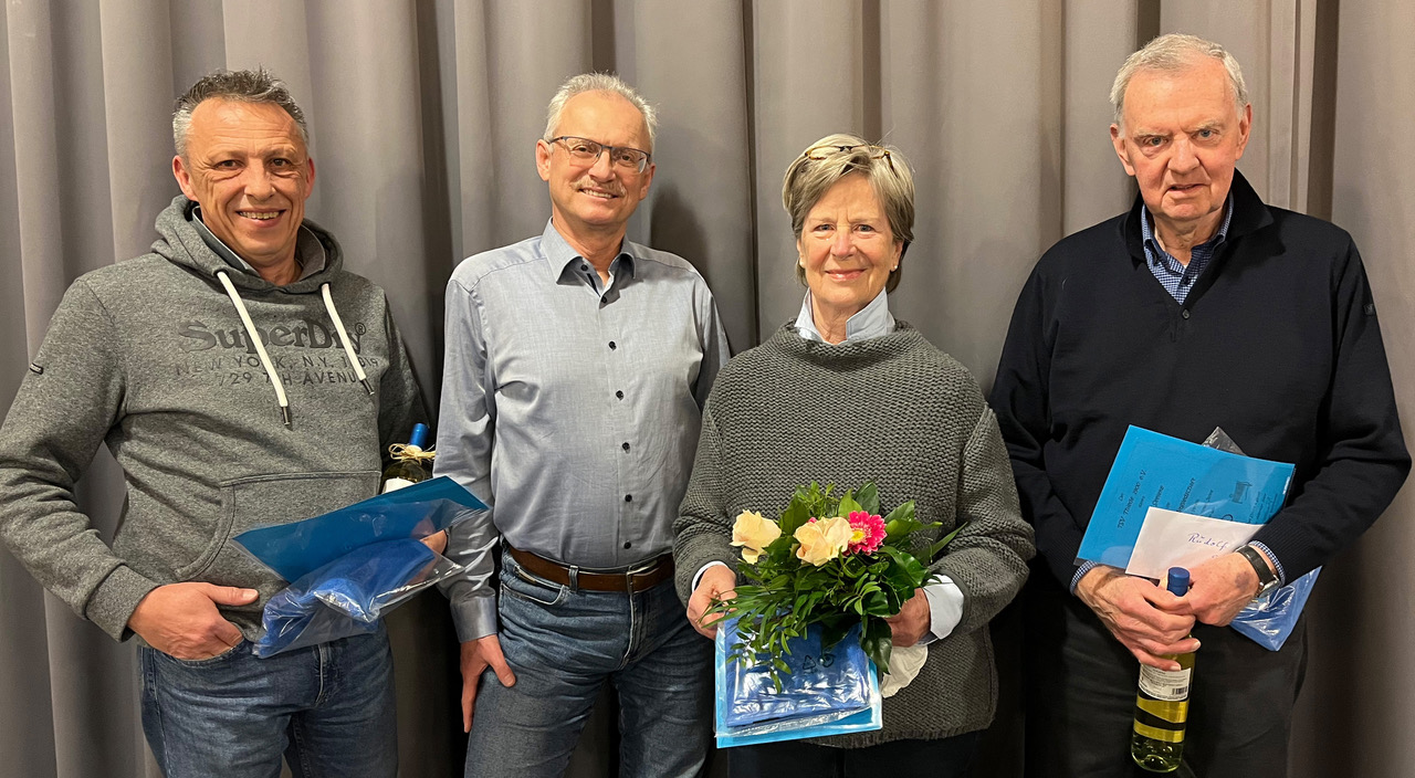 Für 40 Jahre Mitgliedschaft gab es drei Ehrungen: Uwe Czerner, Ursula und Rudolf Seeleke, hier mit Bertram Boronowski (2. v. Links).